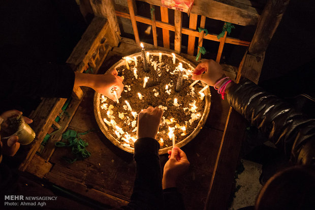 شبیه این مراسم البته با کمی تغییر در شهرستان آستارا پس از اقامه نماز ظهر تاسوعا برگزار میشود که عزاداران با پای پیاده به در ۱۲ مسجد رفته و در مقابل تشتهای بزرگ آب ۱۲ شمع را به نیت برآورده شدن حاجات روشن میکنند.